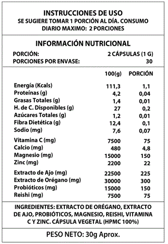 Dosis recomendada: 2 cápsulas al día, preferiblemente con alimentos.