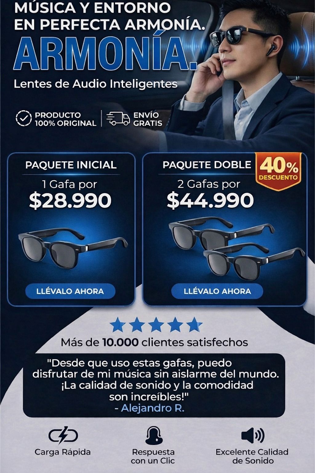 “Al principio pensé que era otro lente chino más, pero la verdad me sorprendieron. Escucho música cuando camino o manejo sin taparme los oídos. El envío fue súper rápido y pagué cuando llegó a mi casa. Muy recomendado.”